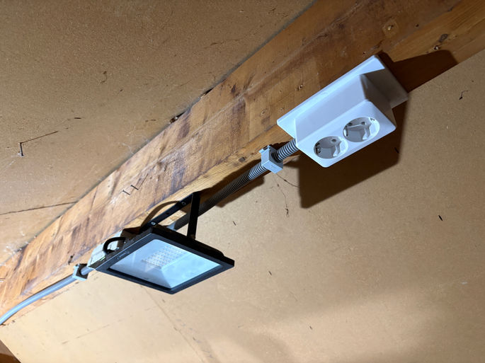 Na het maken van een vliering in de garage is ook het elektra volledig vervangen. Alle buizen, draden, schakelaars en contactdozen zijn vernieuwd voor een veilige installatie. Ook is er nieuwe verlichting gemonteerd met een wisselschakeling bij de twee in- en uitgangen van de garage.