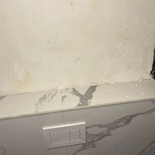 Bij deze klant was een klusser geweest die dacht dat stucen niet zo moeilijk zou zijn. Dat bleek helaas toch anders te zijn. Na het eerst schoonmaken van de achtergebleven rotzooi, zijn de muren en de vloer dit keer wel netjes afgedekt. Na het aanbrengen van de primer zijn het plafond en de achtermuur glad gemaakt.